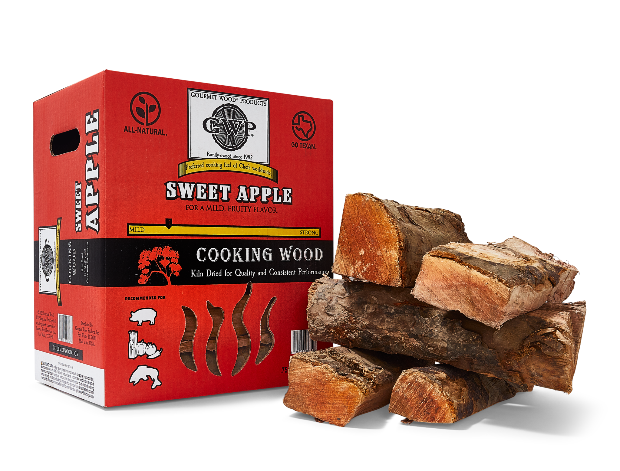 GWP Fruit Cooking Wood (apple & cherry) is best suited for use in off-set smokers & barrel smokers for longer smokes and is especially preferred in smoking turkey, hams, & wild game. It can also be used in combination with other hardwoods to provide a milder smoke of the hardwood being used.